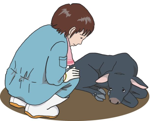 - 食事は、その動物本来の採食をさせること。反芻動物たる牛は自分の舌で草を巻き取ることが自然。そして過剰な栄養を与えて胃などに消化不良などの負荷による病気を起こさせないこと。