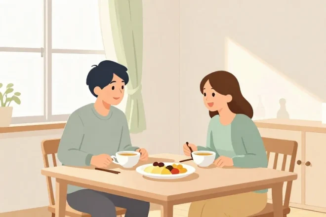 隣には条件ではなく、心の温かさで選んだ旦那様がいます。二人で囲む食卓には笑い声があり、ありのままの自分でいられる安心感に包まれています。